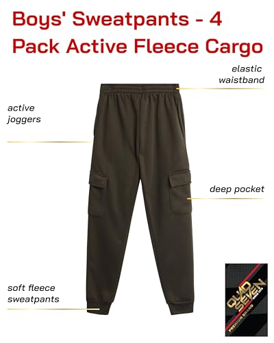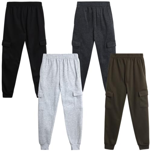 Boys’ Sweatpants – 4 Pack Active Fleece Cargo and Basic Jogger Pants (Size: 4-18)