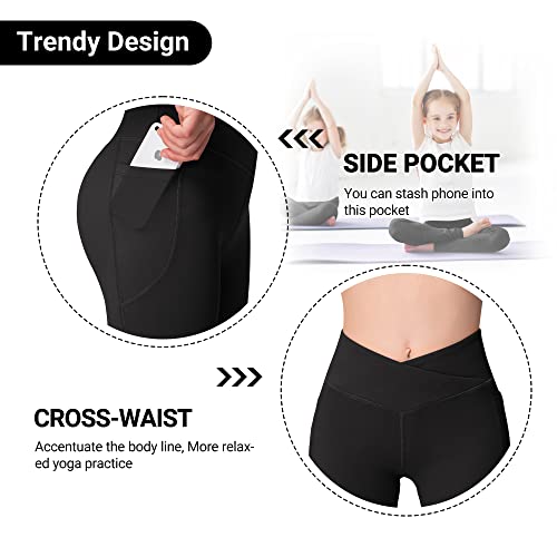 Girls Bootcut Yoga Pants with Pockets – V Cross High Waist Flare Workout Dance Leggings for Teen Girls