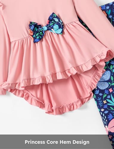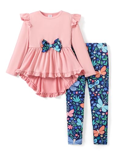 PATPAT Toddler Kids Girls 2Pcs Clothes Set Bowknot Design Ruffle Hem Long Sleeve Top and Floral Print Pant Outfits