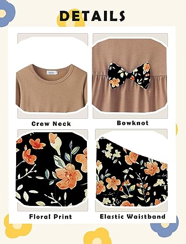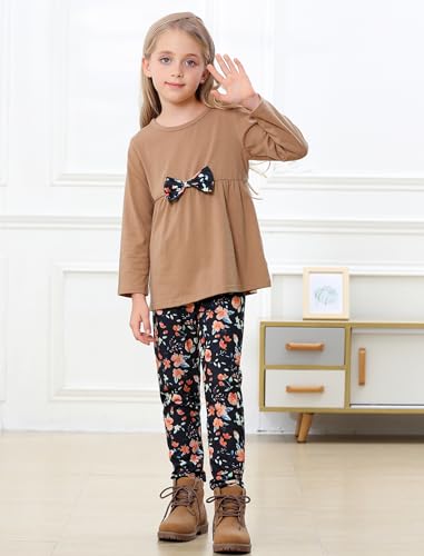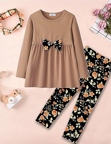 Yekaty Girls Clothing Set 2 Pcs Floral Soft Crewneck Long Sleeve Top+Leggings Loose Outfits With Bowknot