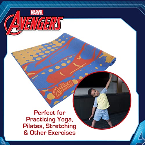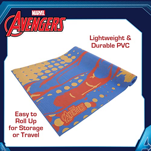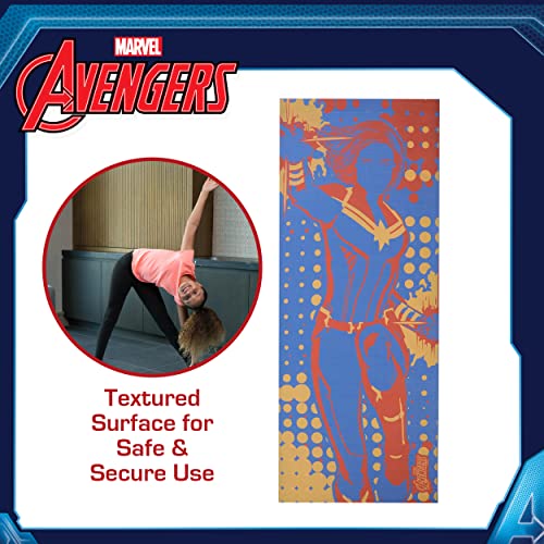 Marvel Captain Marvel Kids Yoga Mat Non Slip for Boys and Girls, All Purpose, PVC, Fitness and Workout Accessories, Navy, 3 mm