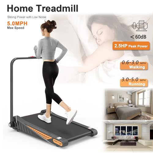 Smallest Under Desk Treadmill with Incline, Small Spaces Walking Pad Foldable, Home Office Mini & Compact Treadmill with Handles Easy Folding