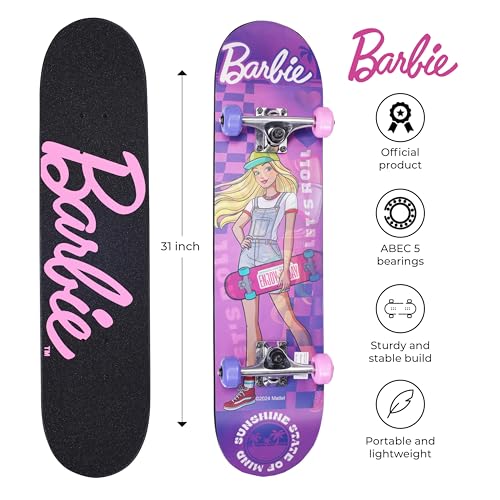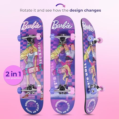Barbie – 31″ Lenticular Skateboard with Pro Trucks, Full Grip Tape, 9-Ply Maple Deck, Ideal for All Experience Levels