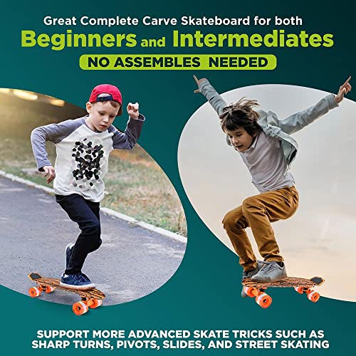 SUITABLE FOR ALL LEVELS: This trick skateboards for kids, teens, and adults can support more advanced skate tricks such as sharp turns, pivots, slides, and street skating. Great complete carve skateboard for both beginners and skilled skaters