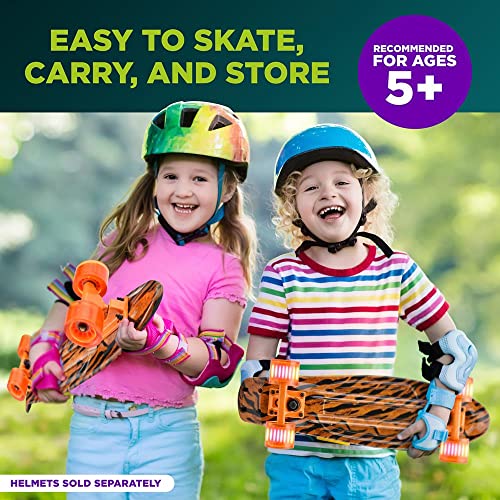Hurtle Standard Skateboard Mini Cruiser – 6” PP Deck Complete Double Kick Skate Board w/ 3.25″ Aluminum Alloy Truck, PU Wheels w/LED Light – for Kids, Teens, Adults (Tiger)