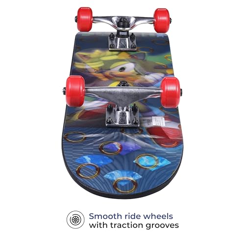 The Sonic the Hedgehog skateboard gives you the ultimate skateboard deck with pro trucks and wheels for any fan of the legendary skater! Our kids outdoor skateboard makes the perfect gift for teen girls and boys in need of a board that can hold its own at the local skatepark or skateboard ramp. The durable skateboard decks ensure your kids’ skateboard can take a little abuse at the skate ramp, and the sleek traditional design makes our skateboards much more versatile than standard cruiser skateboards.