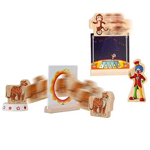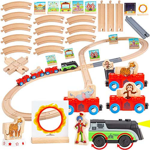 ORBRIUM 41 Pcs Battery Operated Motorized Light and Sound Circus on Wooden Railway Figure 8 Train Set Compatible with Thomas, Brio, Chuggington, Melissa & Doug