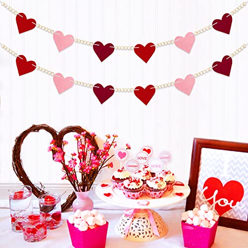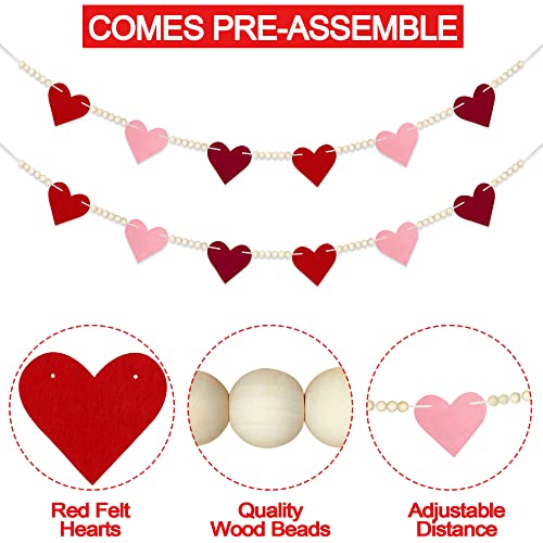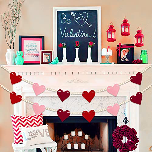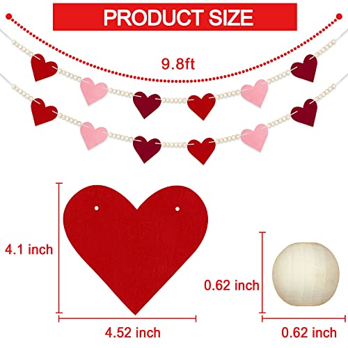 【PACKAGE INCLUDED】Our valentines decorations include 2pcs valentines garland, red pink burgundy felt heart with wooden beads between the ends, which will make your party decor more brilliant and special to attracted your lover eyes.