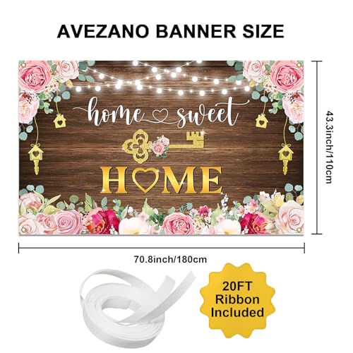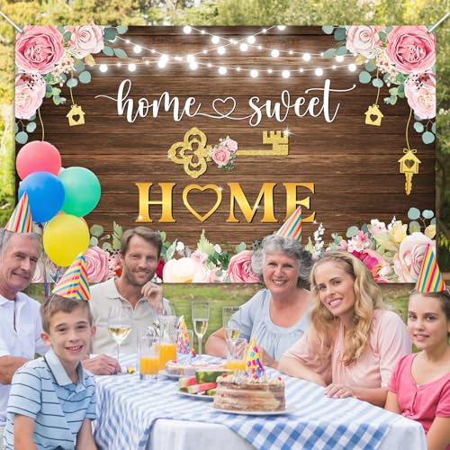 Avezano Housewarming Party Backdrop Rustic Wooden Pink Floral Home Sweet Home Photography Backdrop Home Key House Warming Party Decoration for New House 70.8 x 43.3 Inch