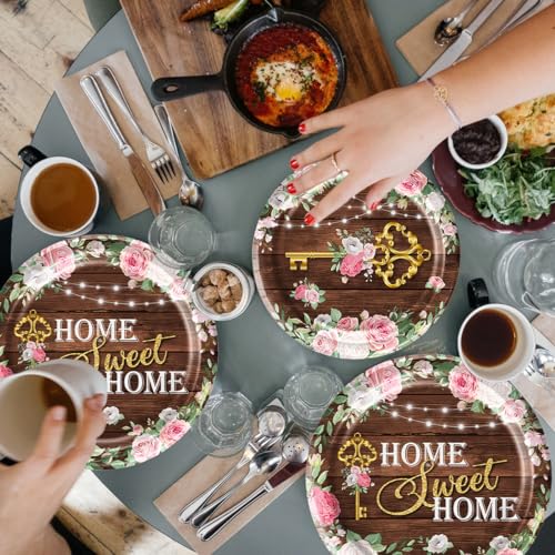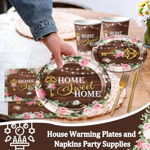 Housewarming Party Decorations 141Pcs House Warming Decoration Party Kit Rustic Floral Tableware Home Sweet Home Housewarming Plates Napkins Cups Tablecloth New Home Party Decorations