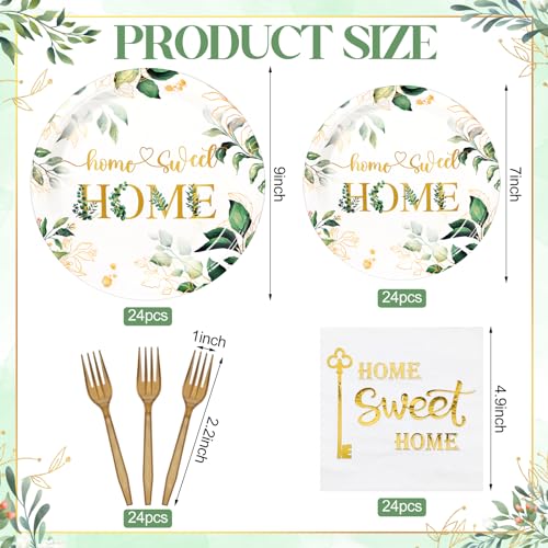 Abundance and Variety: these housewarming party supplies come including 48 pieces of beautiful green leaf designed paper plates in 2 sizes, 24 each of 9 inch and 7 inch; Moreover, the package also contains 24 paper cups, 24 napkins, and 24 forks, ensuring that you have most of your party accessories in one place