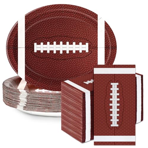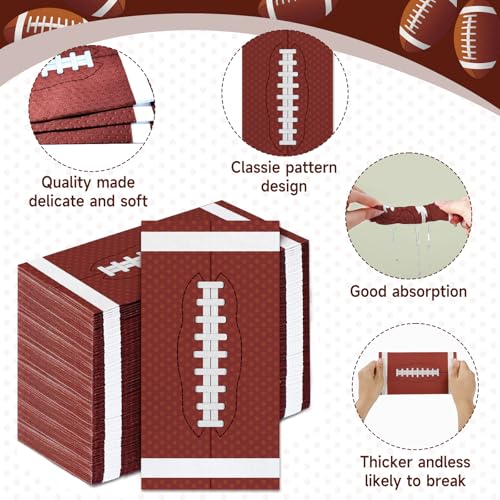 150Pcs Large Football Party Supplies Set, 100Pcs Football Napkins & 50Pcs Food Plates, 3-Ply Disposable Hand Towels and Nacho Tray for Sports Events, Game Day, Carnivals, and Birthday Party