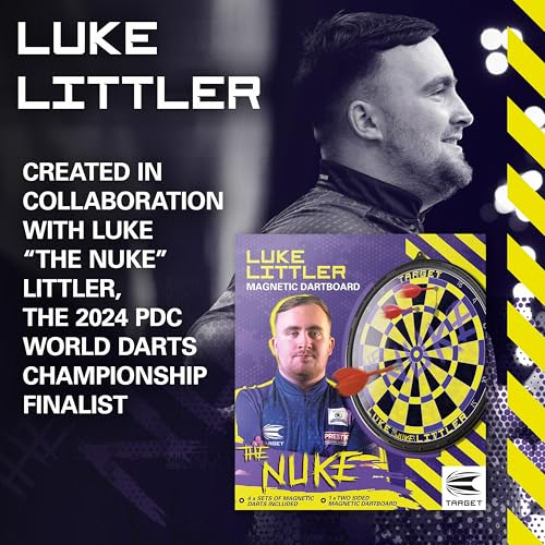 Magnetic Dart board Set for Kids | Player Edition ‘The Nuke’ Double Sided Magnetic Dart Board Game Set with 12 Magnetic Darts for Children | Indoor & Outdoor Use Made by Target Darts with Luke Littler