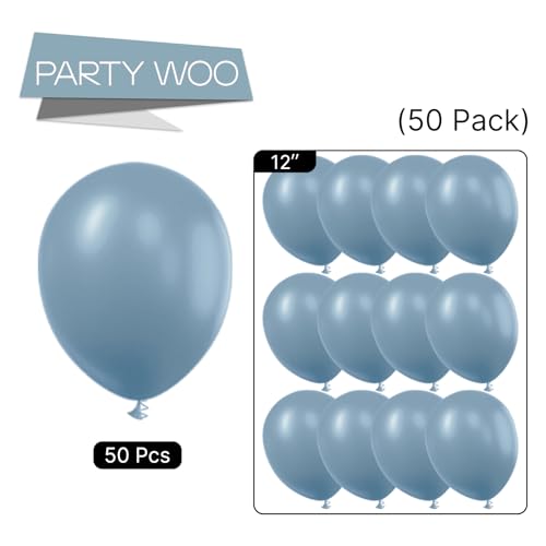 PartyWoo Light Grey Blue Balloons, 50 pcs 12 Inch Boho Blue Balloons, Pale Blue Balloons for Balloon Garland Balloon Arch as Party Decorations, Birthday Decorations, Baby Shower Decorations, Blue-F55